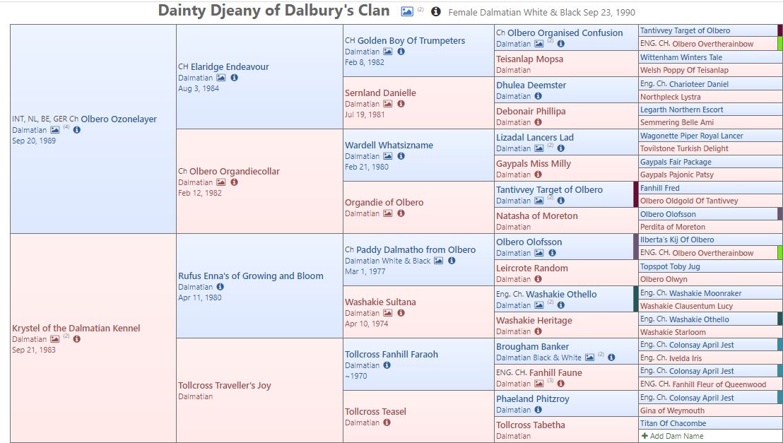 Srdíčková fena, matka CH. CHERRY Petrovický vítr, BAER Bilateral +/+ , liver, Chovná fena, byla láskyplná fenka, taková se rodí jednou za pár let. Své přednosti podědila po svých rodičích a předala je dál svým dětem.
