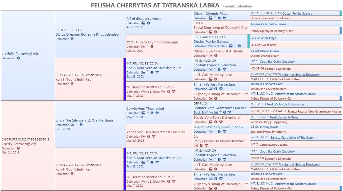 Ve Felishky rodokmenu najdete mnoho slavných psů zvučných jmen, legendárních Chovatelských stanic z různých států.